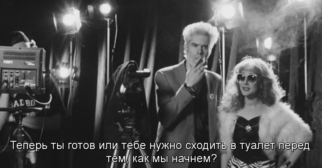 Что-то вроде «Бруклин, я люблю тебя» с поправкой на камерный формат. Не Париж все же, хотя «С унынием в лице» — в некотором роде предтеча подобных киносборников. В ролях — все-все-все: Харви Кейтель (он тут за главного), Лу Рид, Майкл Дж. Фокс, Мадонна и, собственно, Джим Джармуш (его персонажа зовут Боб). Поскольку все истории проходят через табачную лавку, ассоциации с «Кофе и сигареты» неизбежны, но альманах Джима вышел позже. Герой Джармуша, к слову, пытается бросить дурную привычку и даже фотографируется с последней сигаретой в полуобнимку с Кейтелем. Помимо этого, Боб пытается изобразить, как курят нацисты, обвиняет в своем пристрастии Голливуд и рассуждает на вечную тему cigarettes after sex.