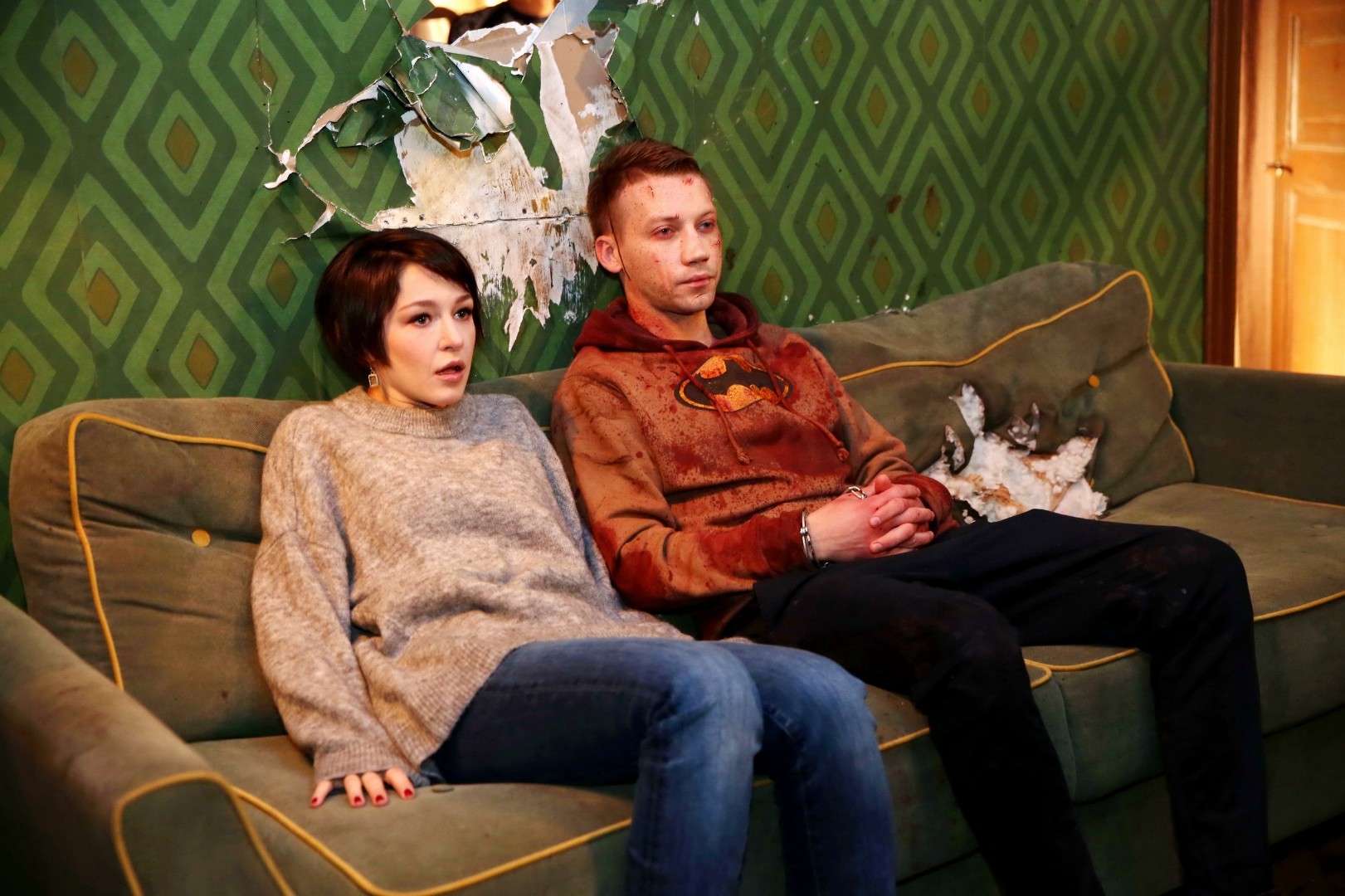 Постановка абсолютно камерная: все действие происходит в рамках одной квартиры, которая быстро и верно превращается в эдакую «комнату 1408». Слов немного, все вопросы действующие лица предпочитают решать невербально — с помощью молотка, ружья, летящего телевизора, а иногда и дрели. Александр Кузнецов стоически кривляется от боли, Александр Домогаров мл. (в роли сексуального маньяка!) ненадолго появляется в олимпийской толстовке с надписью «RUSSIA», Михаил Горевой идеально матерится без запикивания в закрытой машине. Нет никакого времени ни на драму, ни на мораль: невинная кровь прольется, и это смешно.